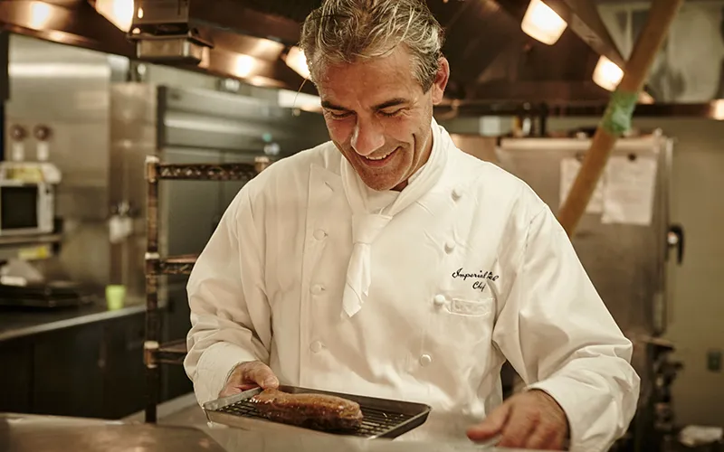 “He started at the Imperial Hotel around age 20 at Les Saisons, then worked in France and England for over ten years before returning to the Imperial. He’s incredibly talented, not just in cooking technique, but also in team management.”
