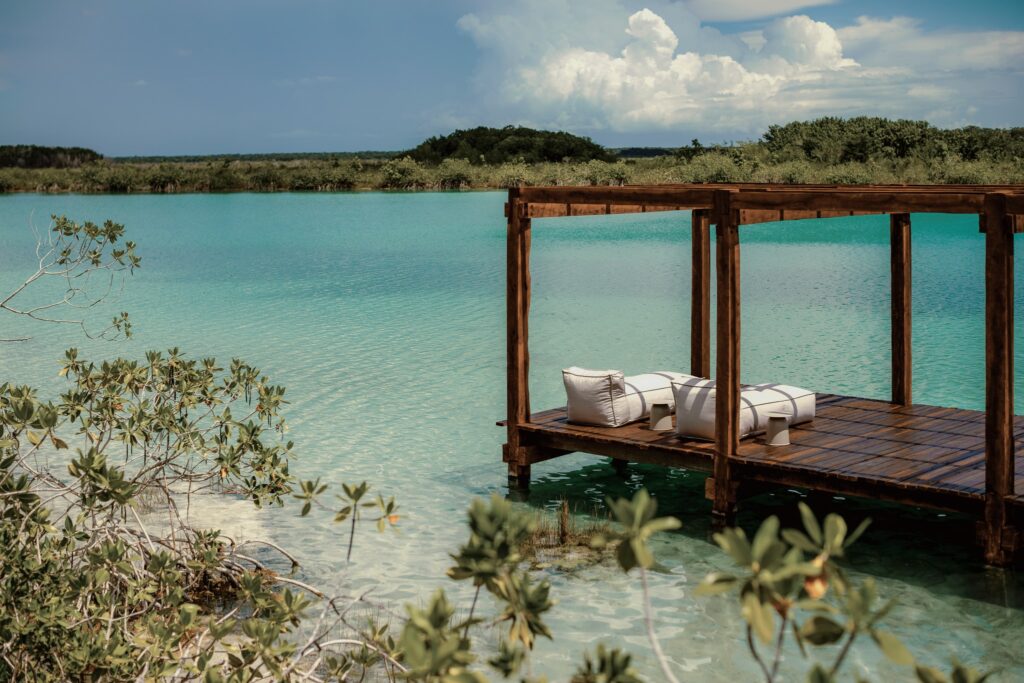 Hidden among the lush greenery of Bacalar, Boca de Agua feels less like a hotel and more like part of the jungle itself. Designed by Mexican architect Frida Escobedo, the property features elevated treehouse-style villas built around living trees, allowing nature to remain untouched below.