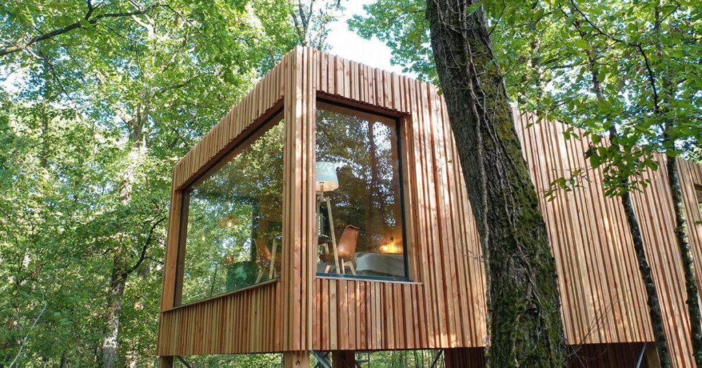 The concept was brought to life by co-founder Anne-Caroline Frey, whose creative vision places contemporary art at the heart of the experience with each of the 18 suites imagined by a different artist. Architect Isabelle Poulain designed the elevated wooden lodges to blend gently with the surrounding forest, using natural materials and open views that invite the landscape inside.